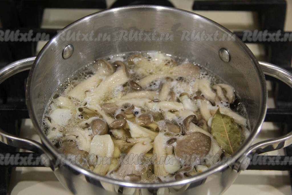 Снова дать маринаду закипеть, а затем варить вешенки на медленном огне в течение 20 минут.