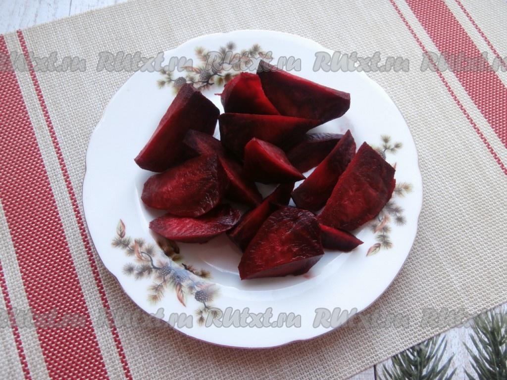 Свеклу очистить, помыть и нарезать кусочками. Я нарезала на небольшие дольки.