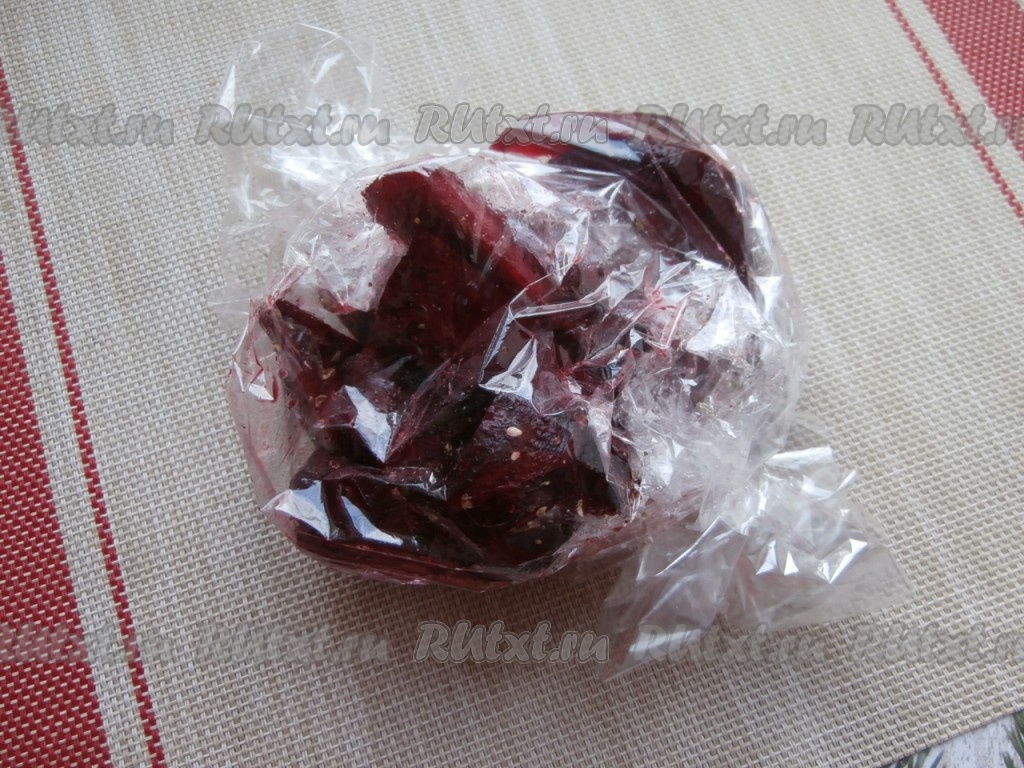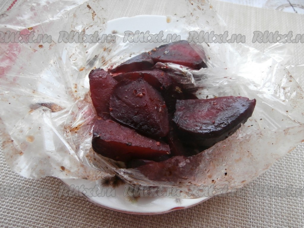 Затем пакет со свеклой достать из духовки. Аккуратно разрезать пакет для запекания (из пакета будет выходить горячий пар).