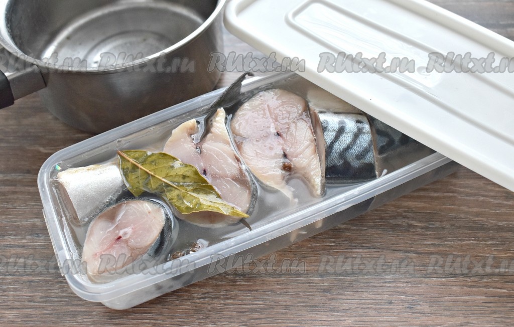 Контейнер со скумбрией закрываем крышкой и оставляем на 12 часов при комнатной температуре, затем убираем рыбу в холодильник на сутки.