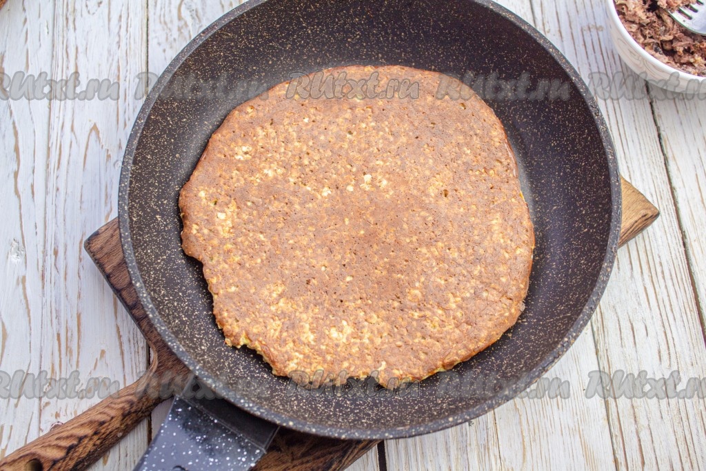 Овсяноблин с тунцом подавайте к столу со свежими овощами и зеленью. Очень вкусный и полезный завтрак вам гарантирован!