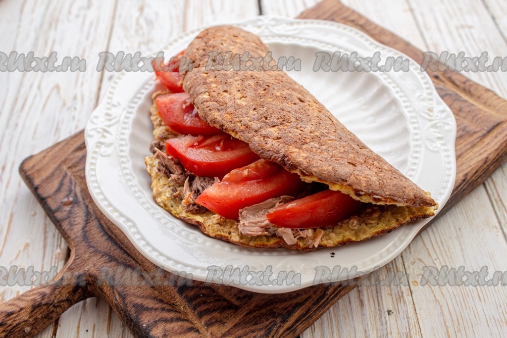 В последнее время среди тех, кто следит за здоровьем и весом, всё чаще принято привычную овсяную кашу заменять на овсяноблины. Я являюсь большой поклонницей приготовления на завтрак овсяноблинов с различными начинками. Экспериментируя с начинками, я каждое утро получаю новое, вкусное и полезное блюдо. Тем более готовится этот блин из овсянки за считанные минуты. Сегодня хочу поделиться рецептом классического овсяноблина с начинкой из консервированного тунца и свежего помидора. Порция, которую я даю в рецепте, рассчитана на 1 человека. Важно знать, что для овсяноблина необходимо использовать овсяные хлопья длительной варки, а жарить этот блинчик нужно при слабом нагреве, накрыв сковороду крышкой. К начинке, по желанию, можно добавить свежие листья салата, свежие овощи, натуральный йогурт или сметану.