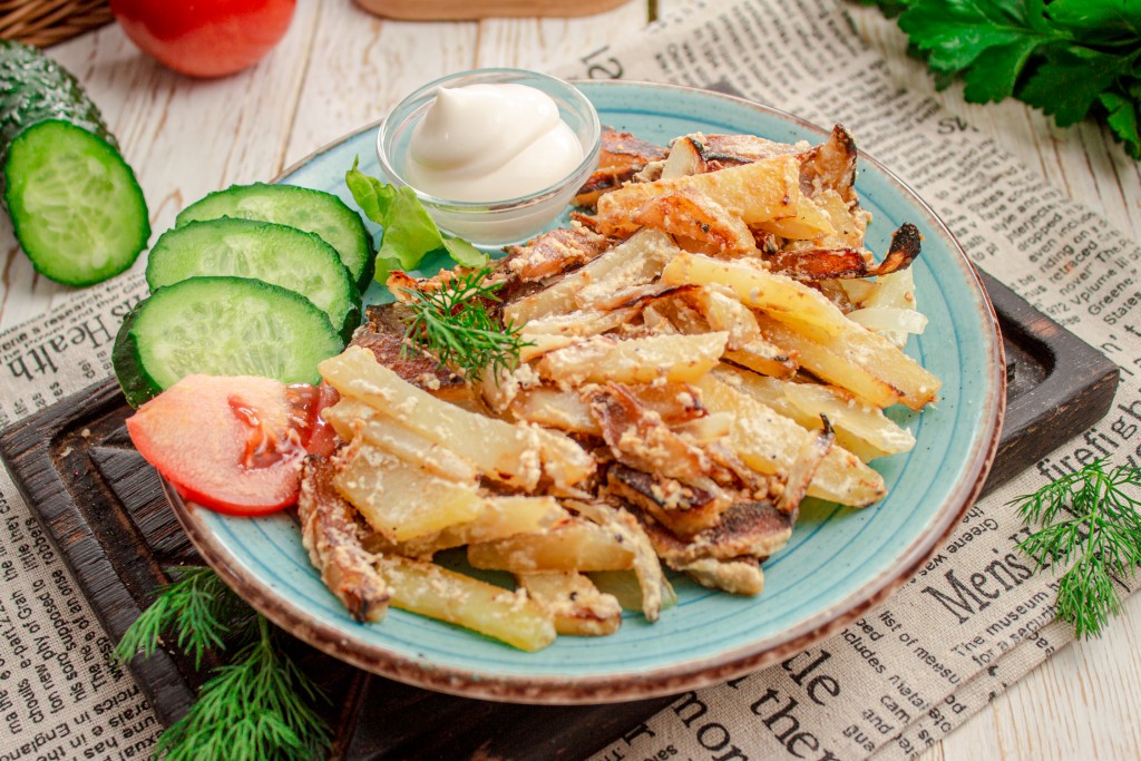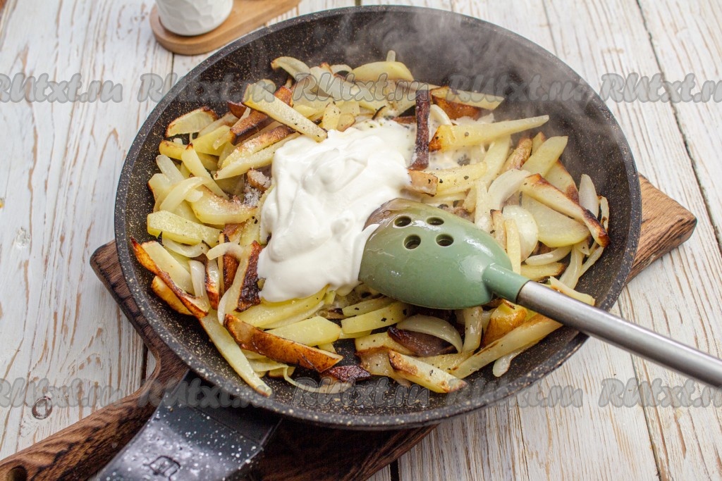 Жареную картошку со сметаной подавайте с пылу с жару, так как именно горячей она очень вкусна. А вот в остывшем виде жареный картофель сильно проигрывает во вкусе, даже если его вторично разогреть. Поэтому это блюдо следует готовить на один раз.