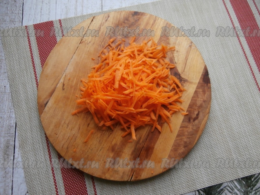 Натереть на крупной тёрке морковь.