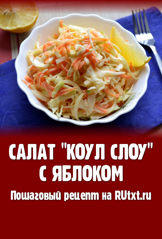 Капустный салат "Коул Слоу" (Cole Slaw), благодаря доступности ингредиентов, насыщенной заправке и приятному вкусу, - одно из самых популярных блюд американской кухни. Вариантов этого салата очень много. В этот раз предлагаю приготовить салат "Коул Слоу" из капусты с добавлением яблока. Благодаря удачному сочетанию овощей и нежной заправке, салат получается очень вкусным. Уверена, попробовав это блюдо, вы будете возвращаться к этому рецепту снова и снова!