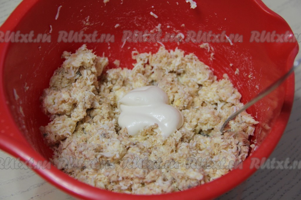 Перемешать массу вилкой, добавить майонез, снова тщательно перемешать. Рыбная масса должна получиться пластичной и не жидкой.