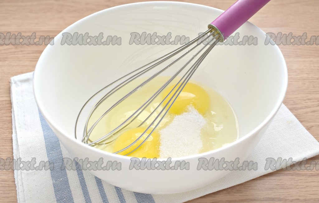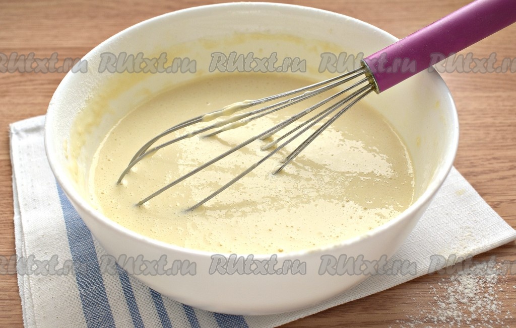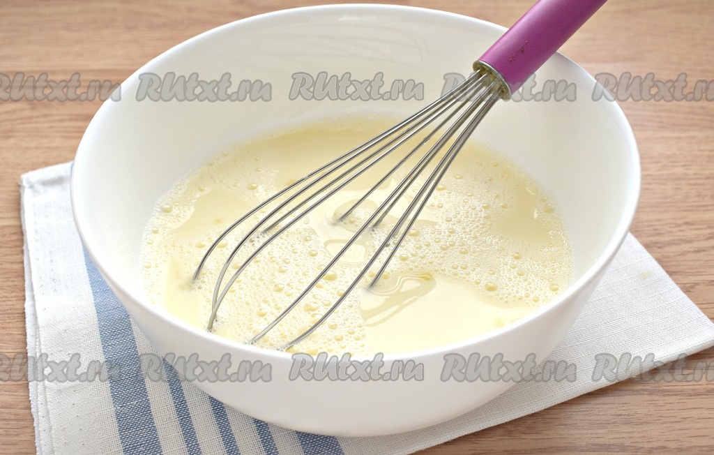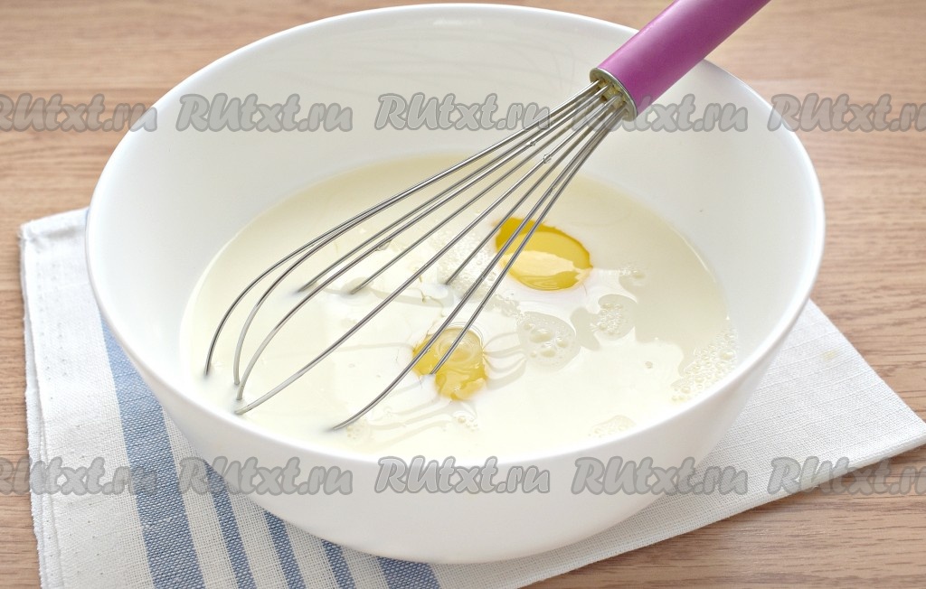 Перемешиваем яйца с молоком венчиком в течение минуты. Должна получиться однородная смесь.