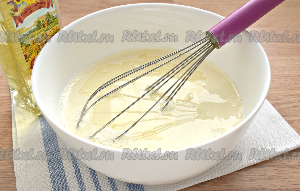 Вливаем растительное масло и снова перемешиваем до однородности.