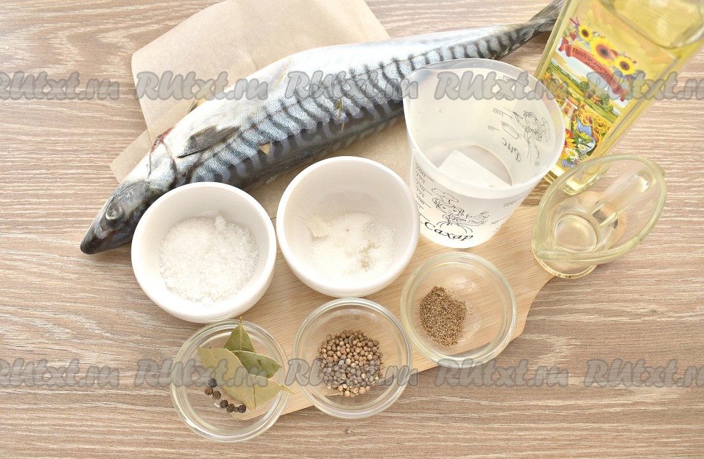 Подготовим ингредиенты. Если скумбрия заморожена, её нужно разморозить. Желательно размораживать на нижней полке холодильника (при такой медленной разморозке скумбрия не потеряет много влаги, а значит получится более сочной).