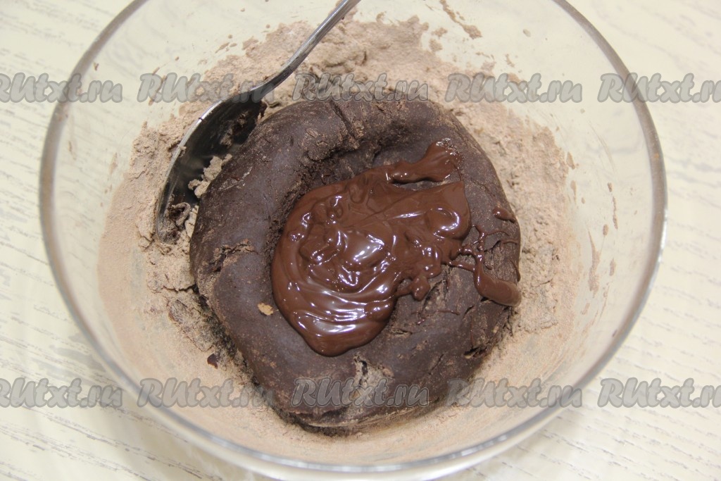 Сначала ложкой, а затем руками замесить шоколадное тесто для пряников, оно получится не плотным.