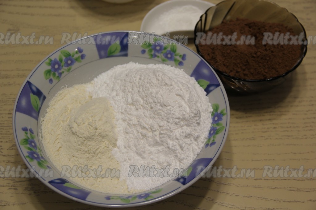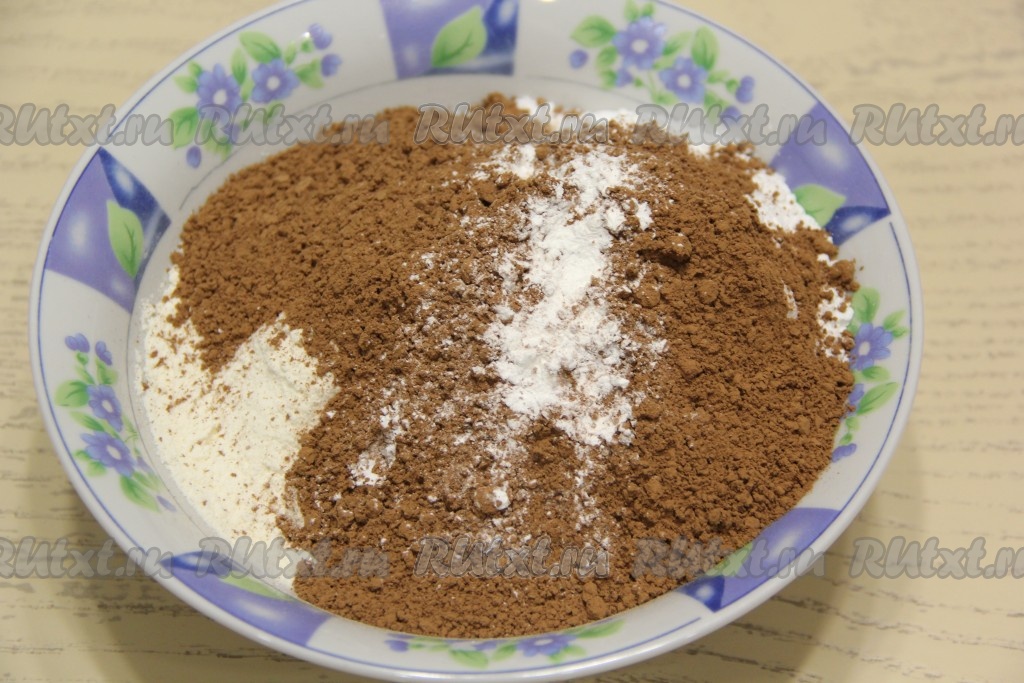 Добавить какао, разрыхлитель и соль.