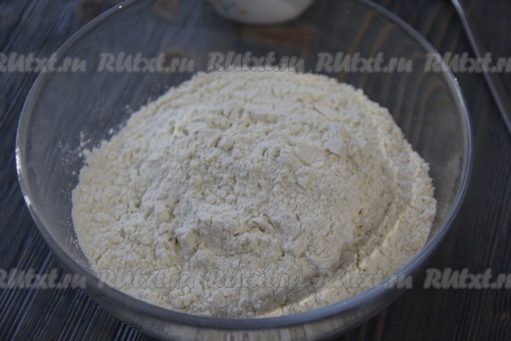 Сюда же всыпать просеянную муку.