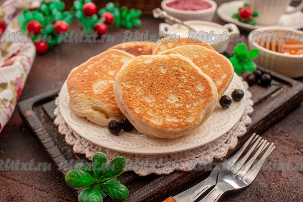 Подавайте оладушки с пылу с жару, дополнив вареньем, мёдом или сметаной. Несмотря на то, что оладьи готовятся на молоке без добавления яиц и дрожжей, они получаются пышными и очень аппетитными.