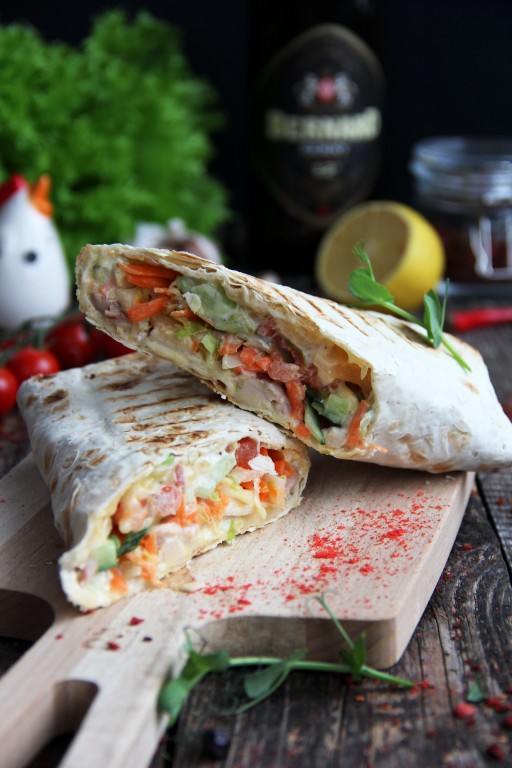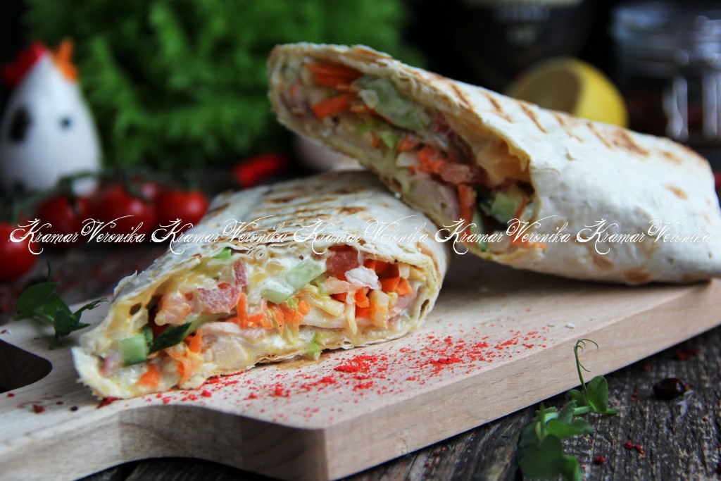 Посмотрите, какой аппетитной, сочной получается шаурма с копчёной курицей, приготовленная в лаваше в домашних условиях.