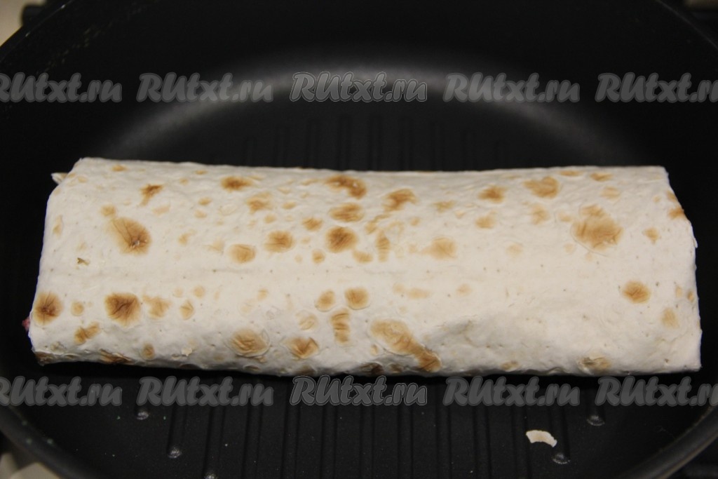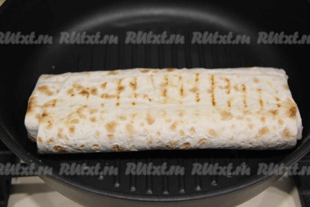 Обжарить шаурму с двух сторон до золотистого цвета лаваша на среднем огне.