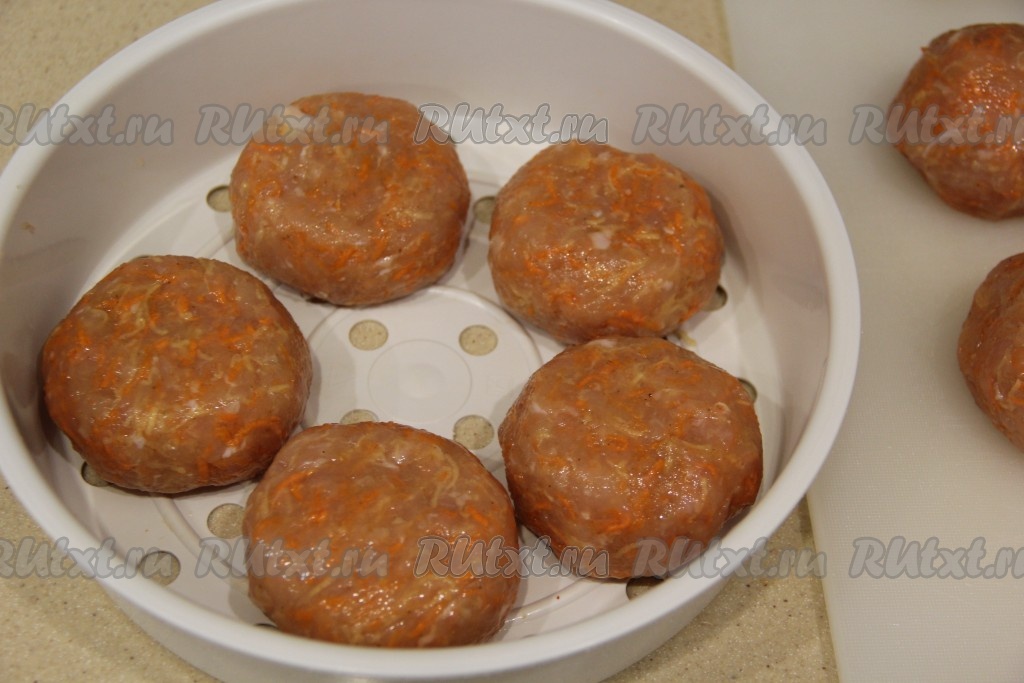 В мультиварке можно приготовить на пару вкусные, нежные, не сухие котлеты из куриного фарша. В этот раз я решила в фарш добавить натёртые сырую картошку и морковь. Овощи придают фаршу особую сочность, поэтому котлетки получились аппетитными, с влажной текстурой. Морковь в котлетах не чувствуется, только по цвету можно понять, что она там присутствует. Подать к столу такие куриные котлеты можно практически с любым гарниром.