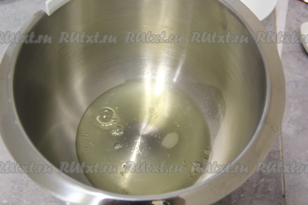 Пока варится сироп, в абсолютно сухую чашу миксера влить охлаждённые белки, добавить соль и лимонную кислоту.
