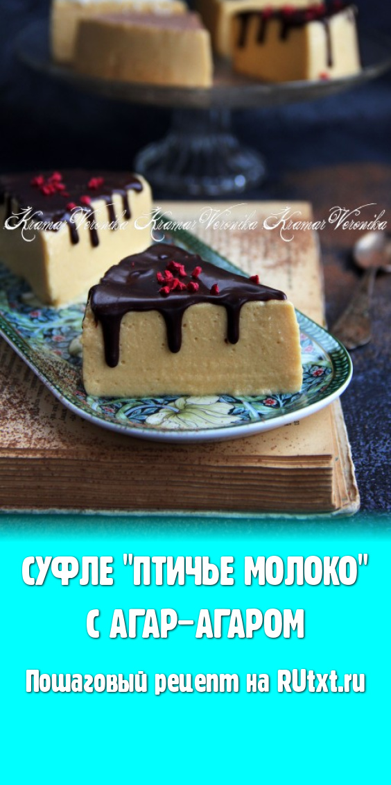 Хочу предложить несложный рецепт приготовления суфле "Птичье молоко" с добавлением варёной сгущёнки и агар-агара. Десерт получается очень вкусным, нежным, чем-то похожим на мороженое. Готовое суфле я нарезала на треугольники, а затем украсила их по-разному: растопленным шоколадом, кокосовой стружкой и какао. Очень важно для приготовления "Птичьего молока" использовать качественный агар-агар, тогда суфле будет держать форму при нарезании.