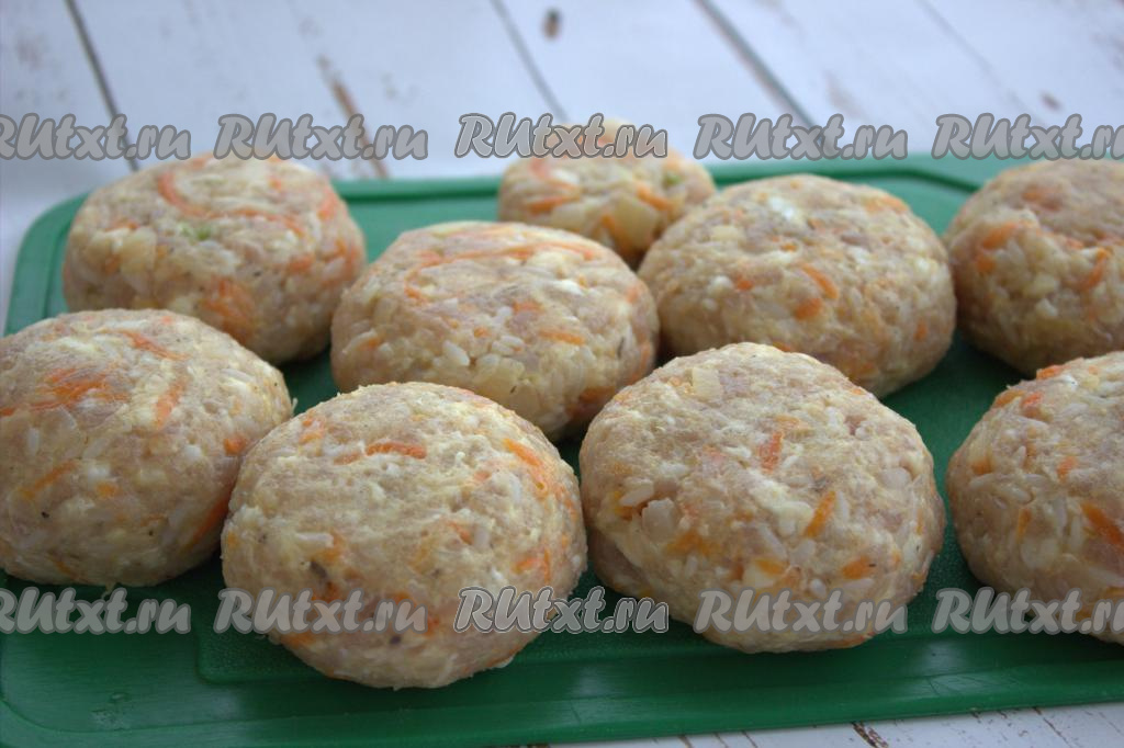 Из получившегося мясного фарша сформировать круглые "ёжики" желаемой формы (у меня получилось 8 котлет диаметром 6-7 сантиметров и одна маленькая котлетка).