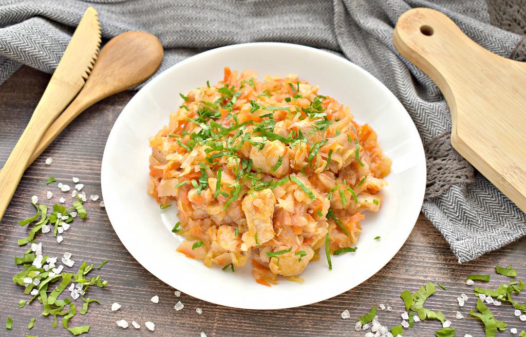 Сегодня предлагаю приготовить вкусную, сочную, очень аппетитную капусту, тушёную с курицей в казане. Для меня это блюдо является универсальным. Его можно подать к столу в горячем виде к обеду или ужину. Такие капуста с курицей в тёплом виде станут отличной закуской, которой можно дополнить картофельное пюре или любой другой гарнир. После остывания это блюдо можно использовать в качестве начинки для различных пирогов или пирожков. Для тушения лучше всего брать мясо без костей, например, куриное филе или мясо, срезанное с любых частей (например, с бёдер или голеней). Уверена, это сочное, сытное блюдо понравится многим!