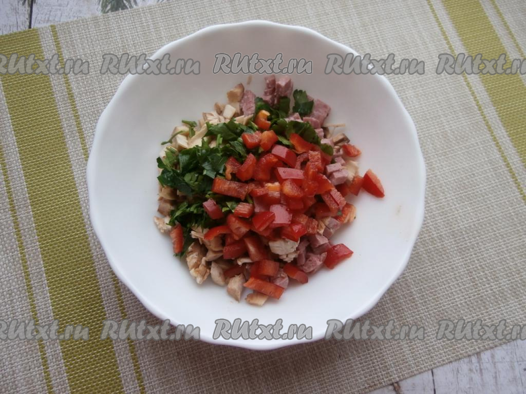 Добавить измельчённую петрушку и нарезанный маленькими кубиками сладкий перец.