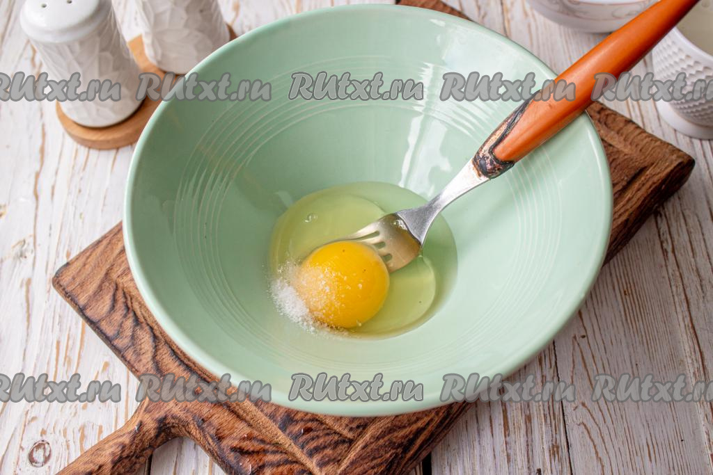 В миску вбейте куриное яйцо, добавьте соль.