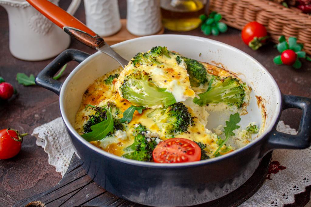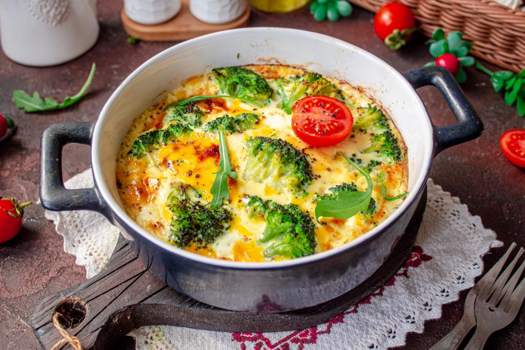 Готовый омлет с брокколи достаньте из духовки, он должен быть упругим и румяным.