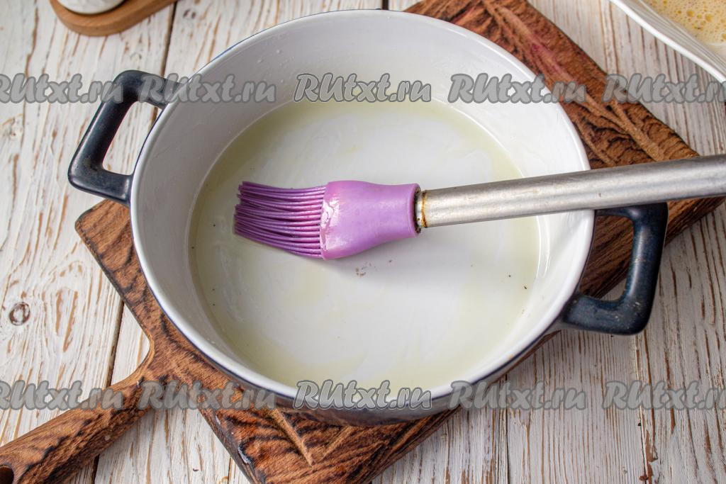 Форму для выпечки (у меня форма диаметром 16 см) смажьте растительным маслом.