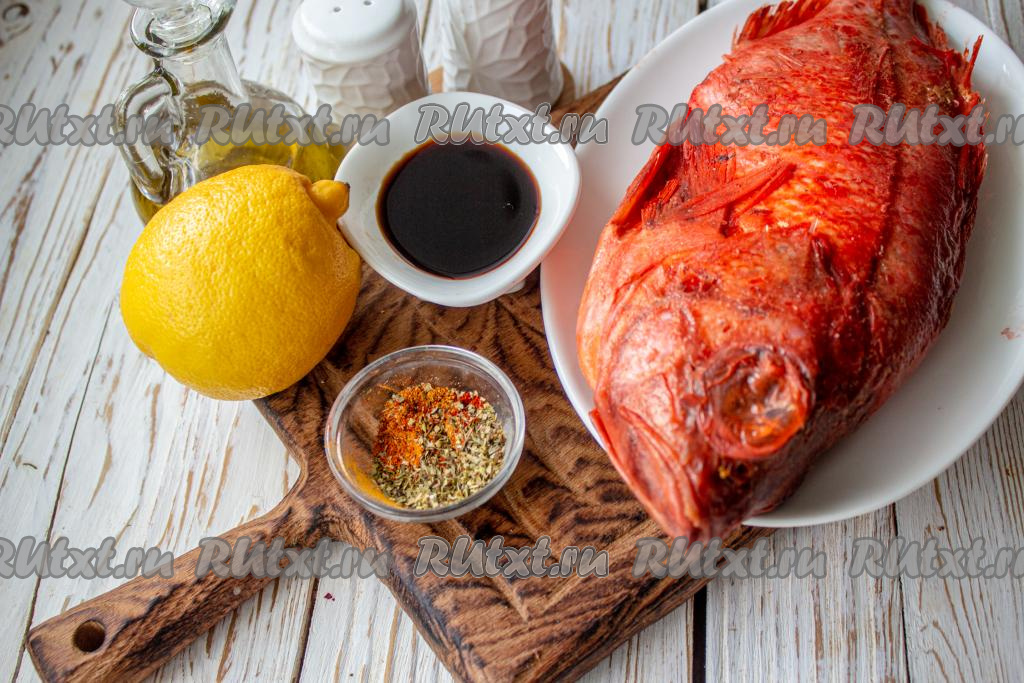 Морской окунь - очень вкусная рыбка с белым мясом. В этой рыбе минимальное количество костей, при этом совсем мало жира. Предлагаю сегодня запечь морского окуня в соевом соусе целиком в фольге в духовке с добавлением лимона и пряных специй. Рыба получается очень ароматной, сочной и вкусной. Подавать готового окуня рекомендую со свежими овощами, салатом и зеленью, поливая образовавшимся при запекании соком.