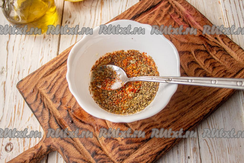 Для приготовления маринада смешайте в небольшой посуде специи для рыбы, добавьте соевый соус, оливковое (или другое растительное) масло, сок, выдавленный из половины лимона, и соль (много соли не добавляйте, ведь соевый соус, входящий в состав маринада, достаточно солёный).