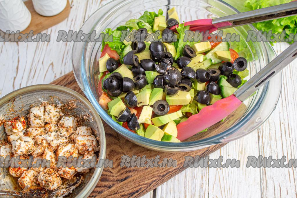 Вкусный, сочный и очень ароматный греческий салат с авокадо подавайте сразу к столу!