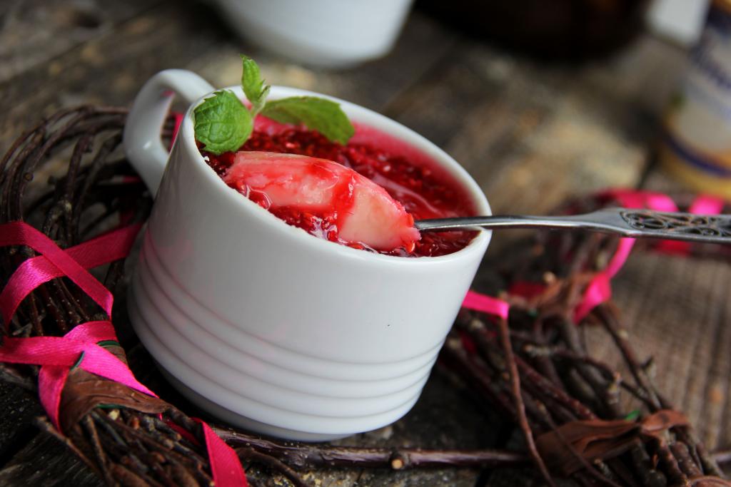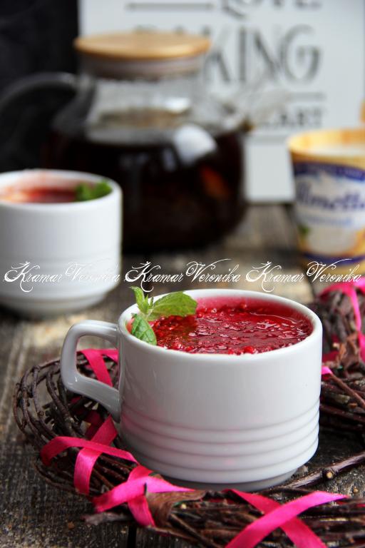 Обязательно остудить творожный чизкейк в течение 30 минут, а затем сверху выложить варенье или густой джем. Подать чизкейк можно прямо в кружках, в которых он готовился в микроволновке. Очень просто и вкусно!
