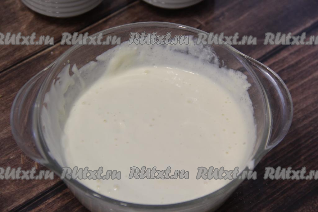 Разложить творожную массу по кружкам, заполняя их не до самого верха. Поставить кружки в микроволновку и запекать при максимальной мощности (у меня - 850 Ватт) 4 минуты. Масса во время запекания поднимется, а когда достанете чизкейк, она опустится.