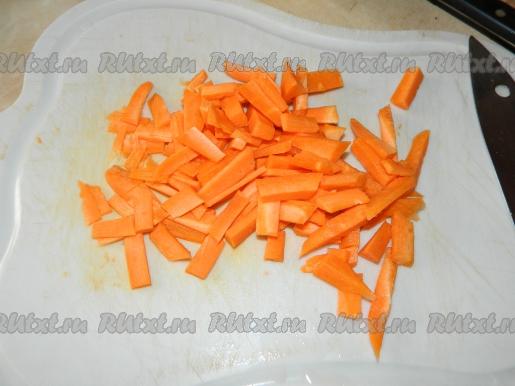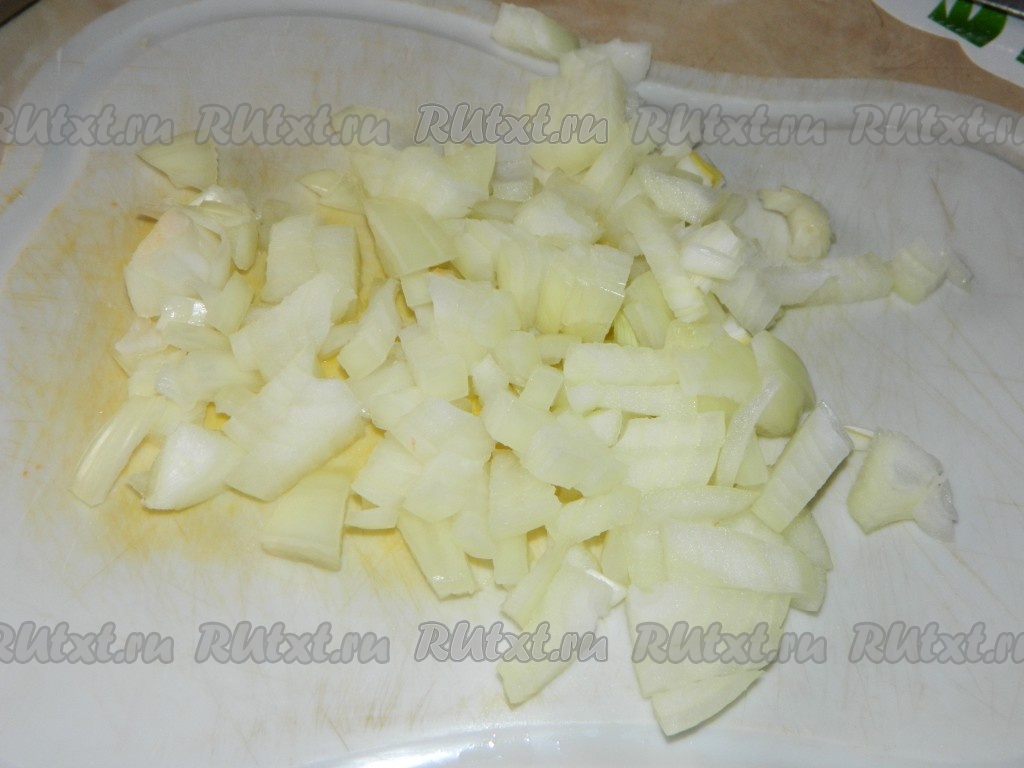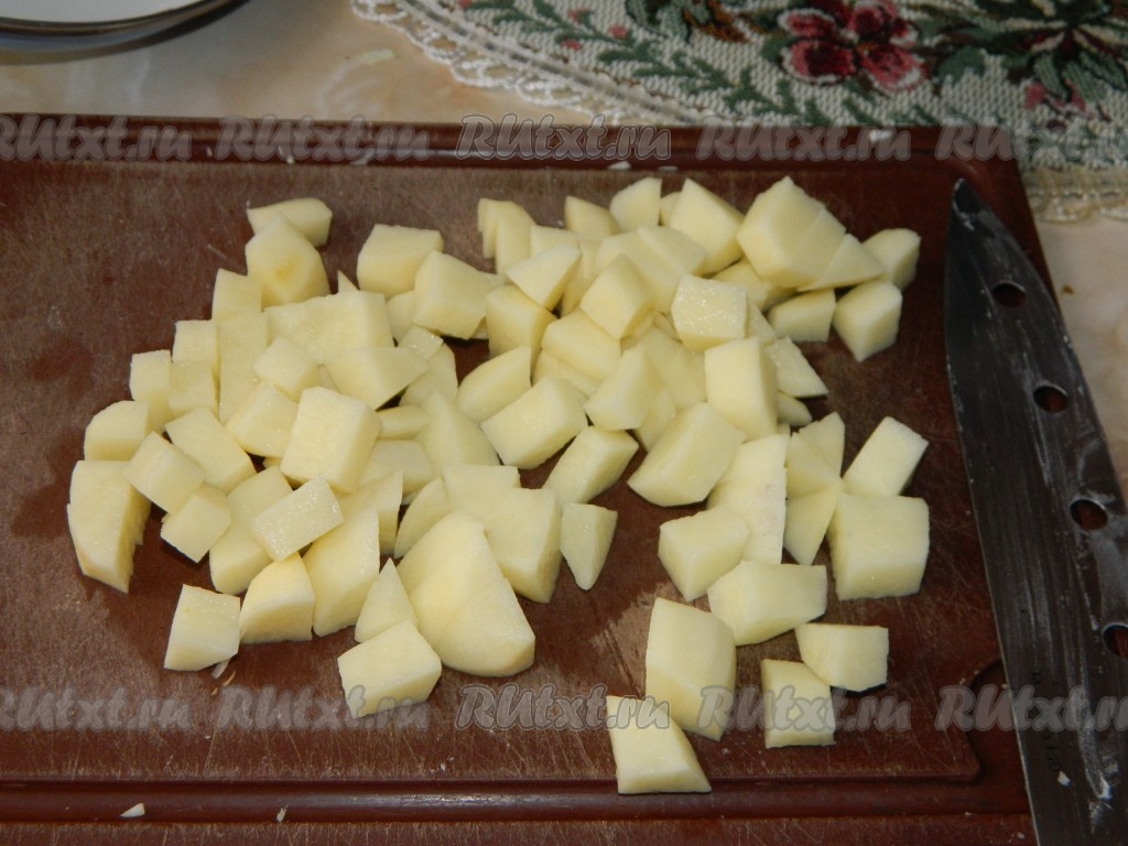Картофель очистить и нарезать небольшими кубиками. Добавить в суп.