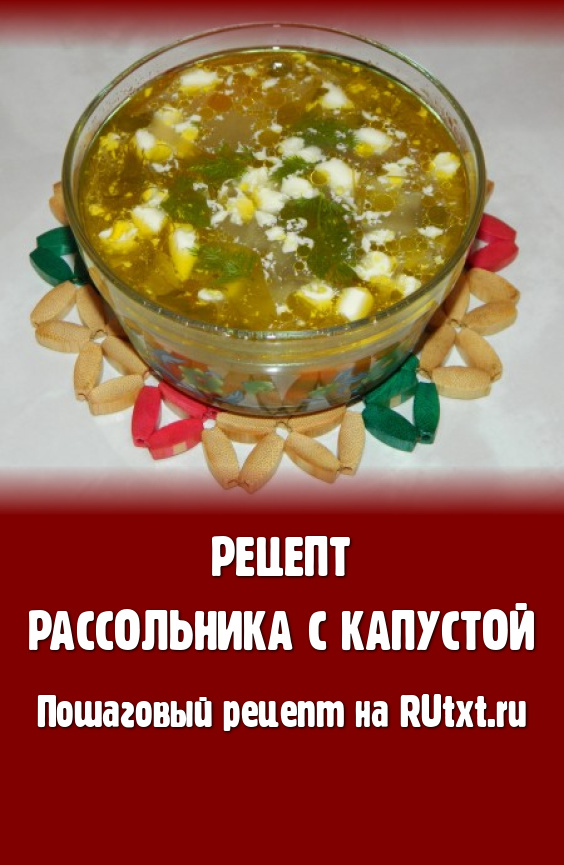 Перед подачей посыпать свежей зеленью и полить сметаной или майонезом. Рассольник с капустой, приготовленный по этому рецепту, получается вкусным и сытным. Прекрасное первое блюдо для всей семьи!