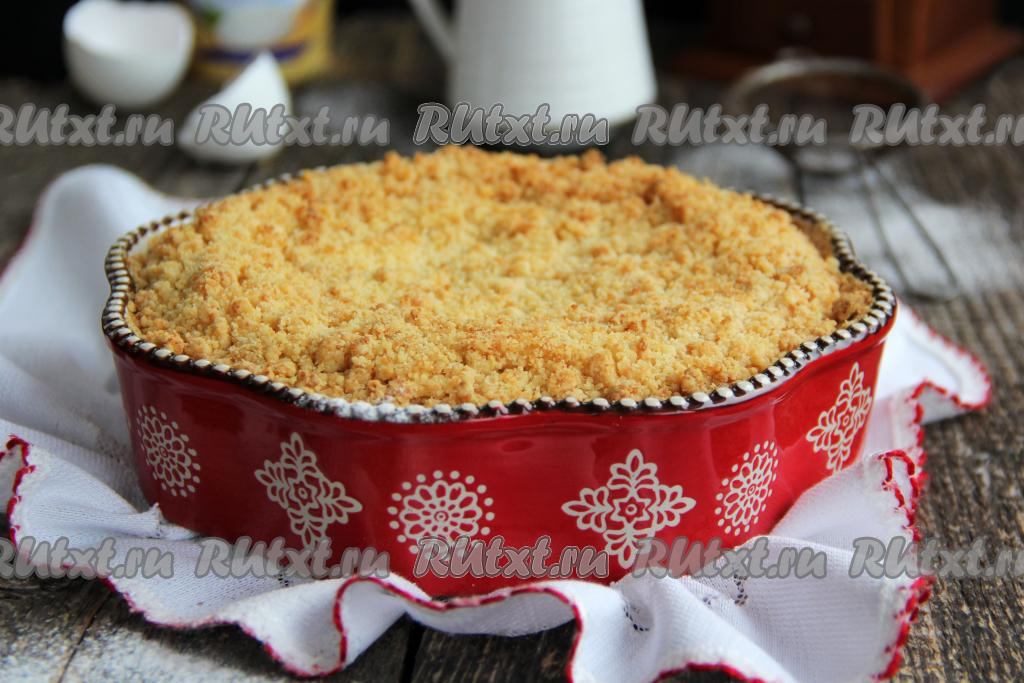 Оставшейся крошкой присыпать творожную начинку. Выпекать пирог "Посыпушка" в разогретой духовке минут 40 (до подрумянивания) при температуре 180 градусов.