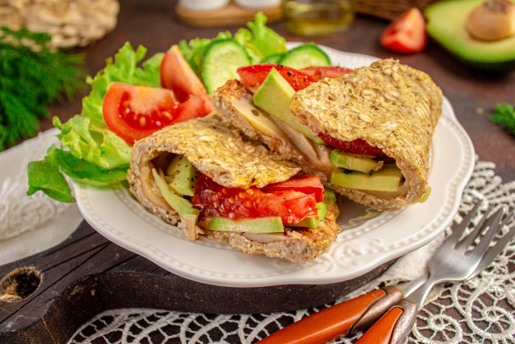 Предлагаю приготовить вкусный и полезный завтрак - овсяноблин с начинкой из авокадо, сыра и помидора. На мой взгляд, это блюдо станет отличным началом дня. Овсяноблин с такой начинкой можно подать не только к завтраку, но и в качестве перекуса или на ужин. Особенно это блюдо понравится тем, кто придерживается правильного сбалансированного питания. Из указанного количества ингредиентов получится 1 порция.