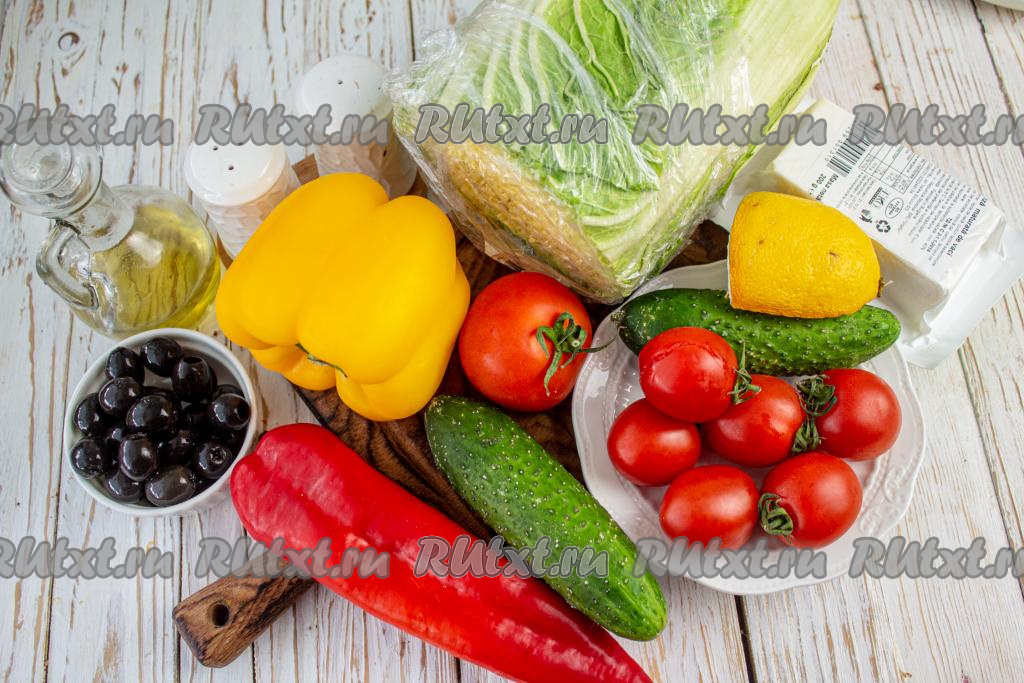Мало тех, кто не любит или не знаком с греческим салатом. Этот салат приобрёл популярность почти во всем мире. И не зря! Идеальное сочетание красочных, сочных, свежих овощей и солоноватого сыра "Фета" делают вкус греческого салата очень интересным. Вариантов этого блюда немало. Предлагаю классический рецепт греческого салата с пекинской капустой. Для салата используйте только верхние зелёные листья. Ну и, конечно, важным ингредиентом является качественное оливковое масло холодного отжима. Готовится греческий салат очень просто и быстро. Его можно подать как самостоятельное блюдо на ужин или в качестве дополнения к мясу, рыбе.