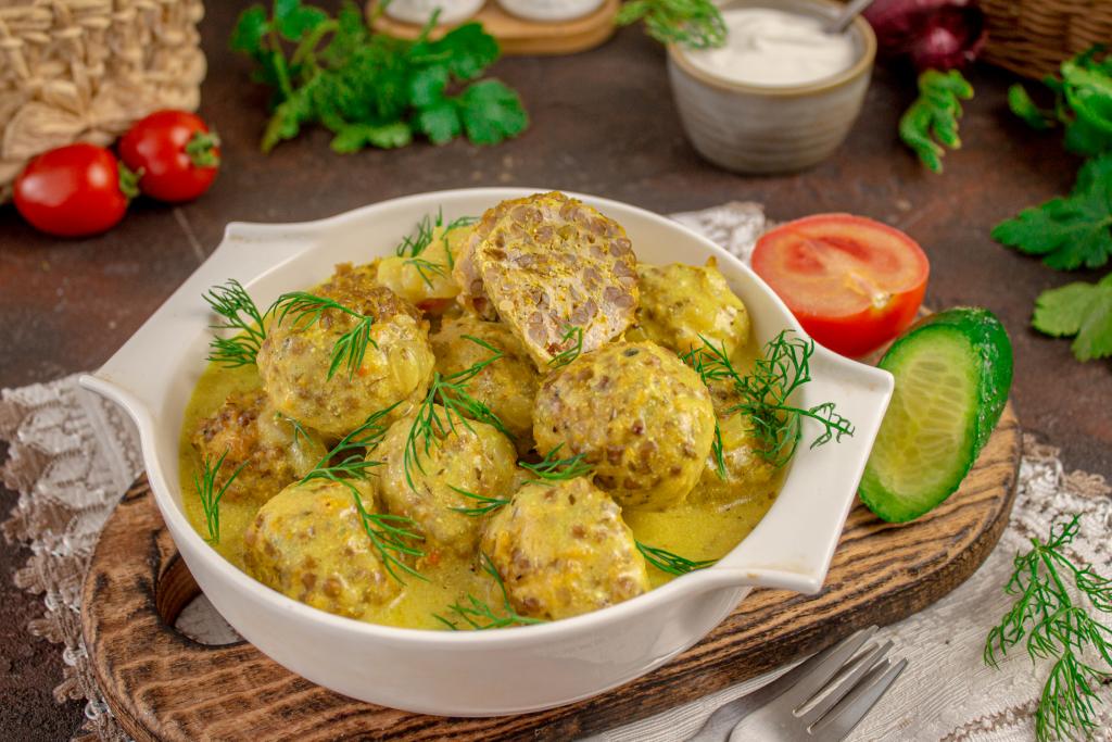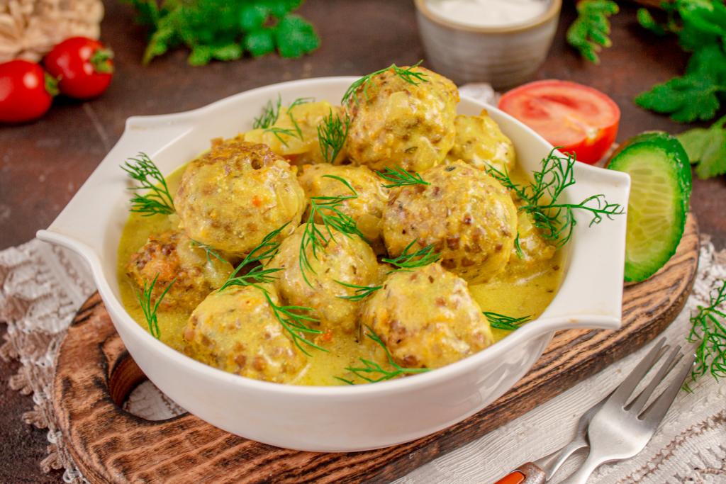 Гречаники - простое, достаточно бюджетное блюдо на каждый день. Гречаники формируют из мясного фарша с добавлением гречневой крупы, а затем их обжаривают или запекают и после этого уже тушат в соусе. Я предлагаю приготовить аппетитные, сочные, очень вкусные гречаники, тушёные в сметанном соусе. Для того чтобы блюдо получилось менее калорийным, мы не будем обжаривать гречаники на растительном масле, а запечём их в духовке, а затем уже потушим в сметанном соусе на сковороде. Подавать это блюдо можно и в самостоятельном виде, и дополнив гарниром или салатом из свежих овощей.