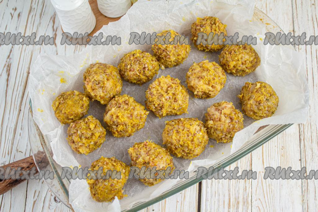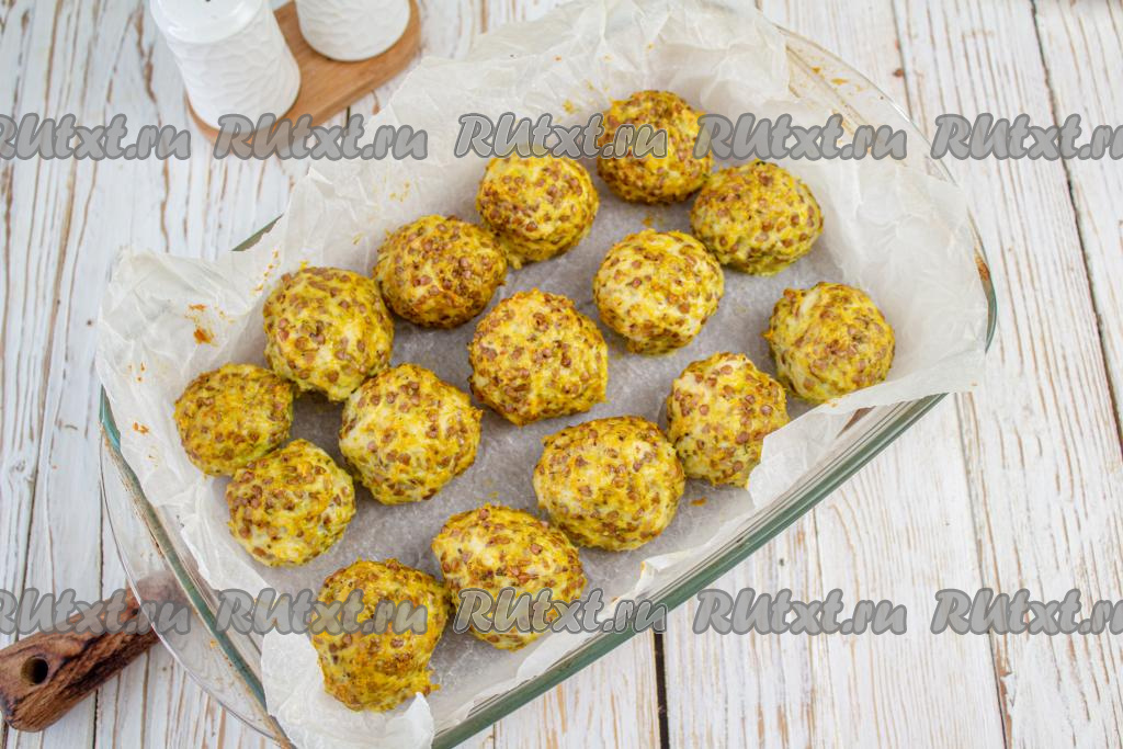Слегка влажными руками сформируйте небольшие шарики - гречаники (я сформировала 15 штук). Форму для запекания застелите пергаментом (или смажьте растительным маслом), затем выложите гречаники. Поставьте их запекаться минут на 20 в духовку, заранее разогретую до 200 градусов.