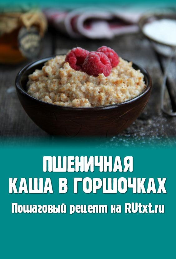 Пшеничная каша очень полезна. Готовить её можно по-разному. Я предлагаю достаточно простой и удачный рецепт приготовления пшеничной каши в горшочках в духовке. Каша получается вкусной, вязкой, не очень густой. Подать её можно с маслом или мёдом. Можно при подаче дополнить её ягодами или кусочками фруктов. Такую кашу можно приготовить в воскресный день на завтрак. Ну а в будний день её можно запечь вечером в духовке, а утром просто разогреть в микроволновке и в горячем виде подать на стол.