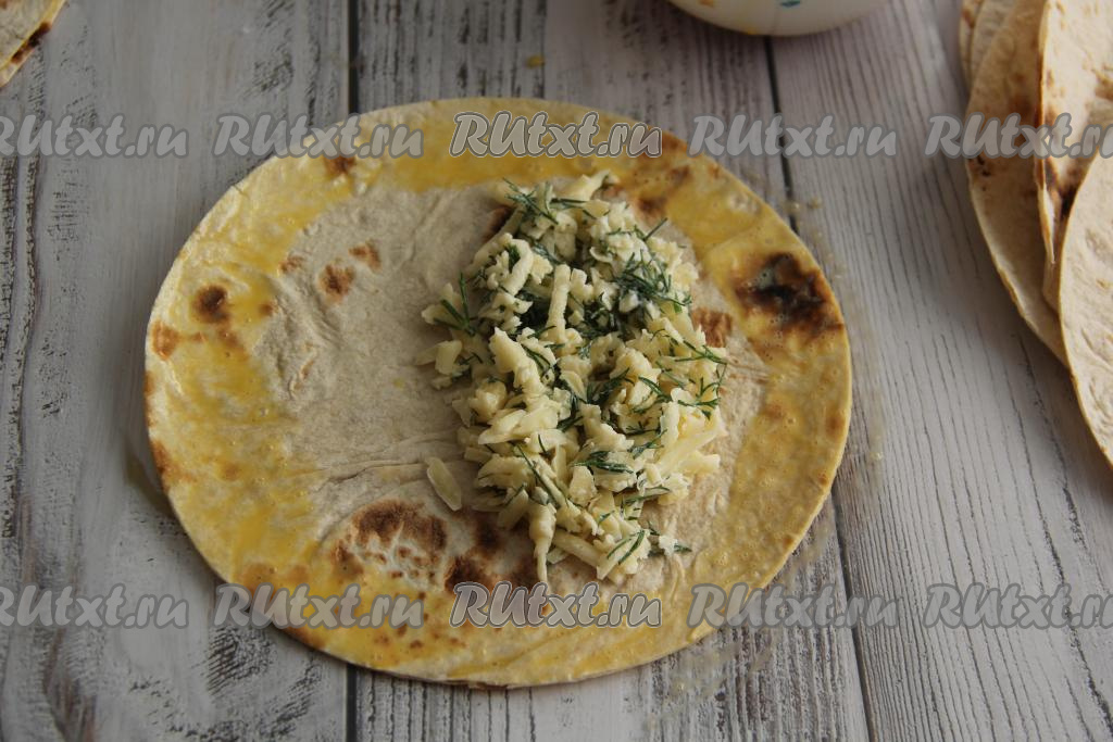 Свободный край лаваша смазать по кругу взбитым яйцом.