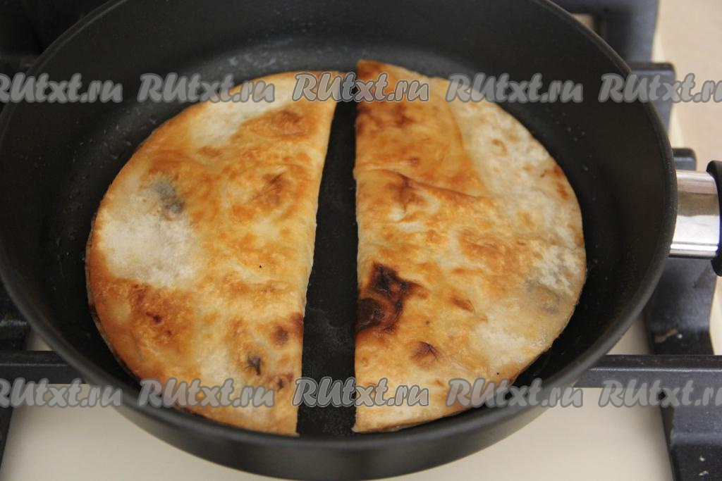 Жарить чебуреки на среднем огне с двух сторон (до подрумянивания). Я с каждой стороны жарила минуты по 2.