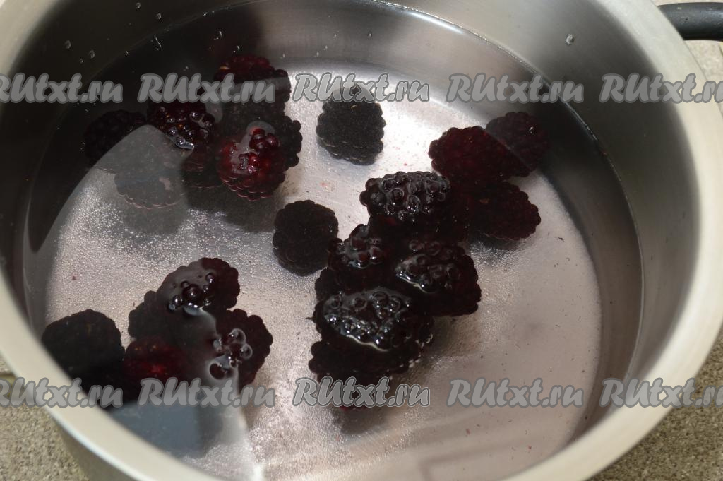 После закипания воды, уменьшив огонь, даём компоту из ежевики провариться минут 10, прикрыв кастрюлю крышкой. Этого времени будет вполне достаточно, чтобы ягоды отдали весь свой вкус и аромат. В конце варки обязательно попробуйте компот на вкус. Сорта ежевики бывают разными, возможно, понадобится добавить чуть больше сахара. Мне 3 столовых ложек оказалось достаточно, компот получился в меру сладким.