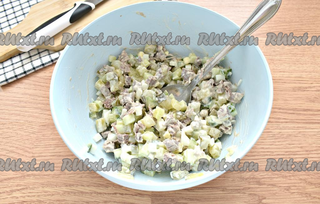 Сочный, аппетитный, пикантный салат, приготовленный с говядиной, яйцами и огурцами, можно сразу подавать к столу!