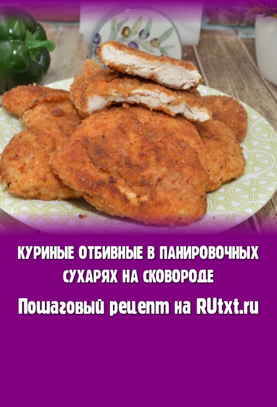 Многие не любят куриное филе, так как считают, что мясо получается суховатым. Но это не так, нужно просто уметь его правильно готовить. Чтобы куриное филе получилось сочным, мягким, его надо сначала как следует подготовить и конечно же правильно пожарить. Мы сегодня будем готовить на сковороде куриные отбивные в панировочных сухарях. Именно благодаря панировке, мясо максимально сохраняет сочность. Существует и ещё одна тонкость - необходимо жарить отбивные на достаточно сильном огне. Приготовьте отбивные по этому подробному рецепту и убедитесь в том, насколько мягким, очень вкусным и сочным получается куриное мясо!