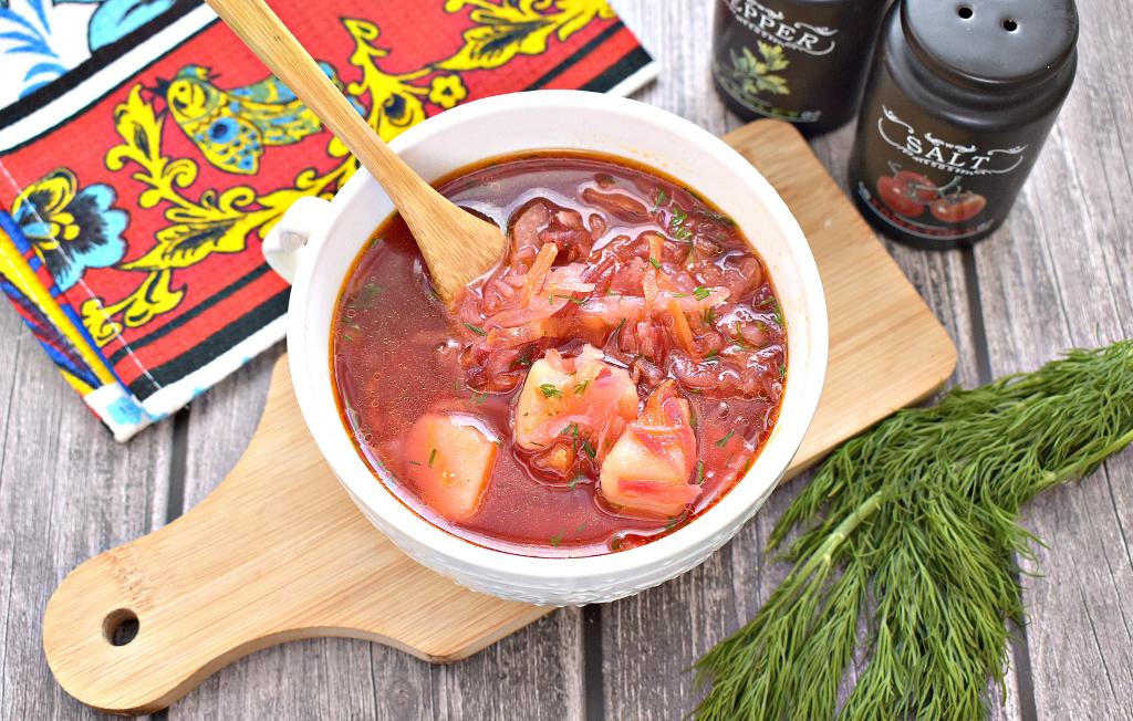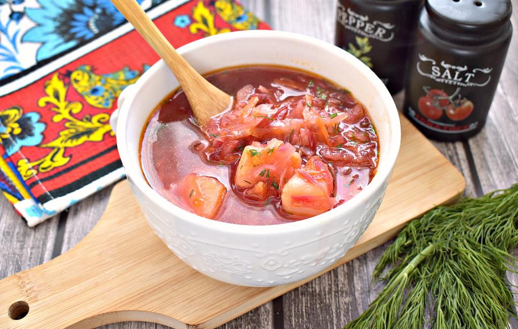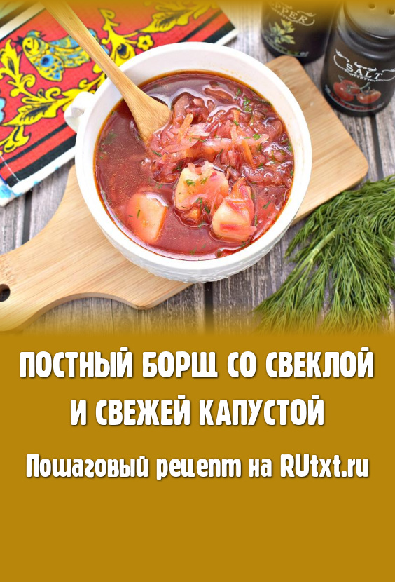 Если вы придерживаетесь постного меню, то предлагаю вам сварить вкусный, достаточно наваристый, аппетитный борщ со свеклой и свежей белокочанной капустой. Блюдо получается сытным, несмотря на то, что готовится без мяса. У борща яркий и насыщенный цвет, ведь свеклу для него будем отваривать отдельно. Готовить это постный борщ несложно, а его вкус, наверняка, понравится всей семье!