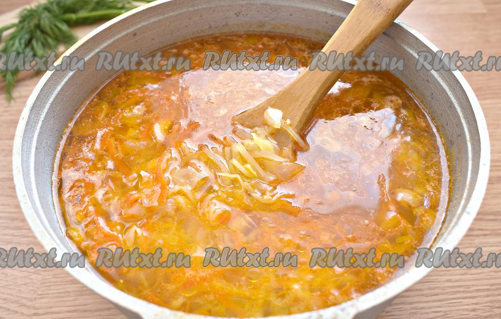 Когда картошка проварится минут 20, добавляем в кастрюлю овощи со сковороды, перемешиваем, варим ещё 10 минут.