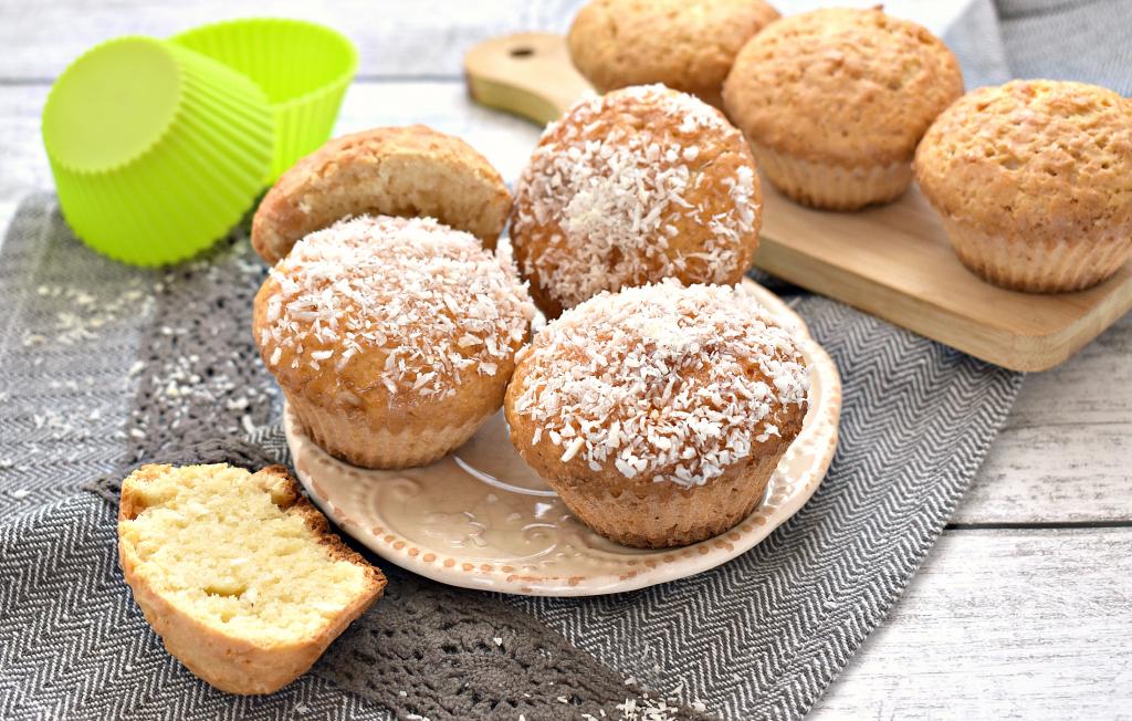 Ароматные, нежные маффины с кокосовой стружкой можно подавать к столу, угощайтесь!
