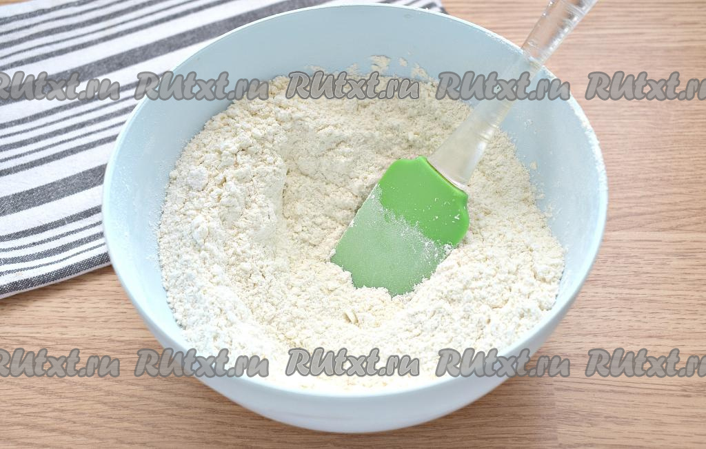 Хорошо перемешиваем получившуюся смесь сухих ингредиентов лопаточкой (или ложкой).